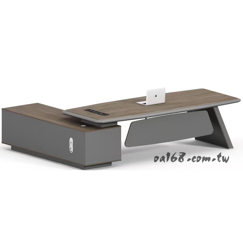 LZ-110造型主管桌W200-214D88H76側櫃W160D50-鐵灰
