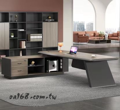 LZ-110造型主管桌W200-214D88H76側櫃W160D50-鐵灰